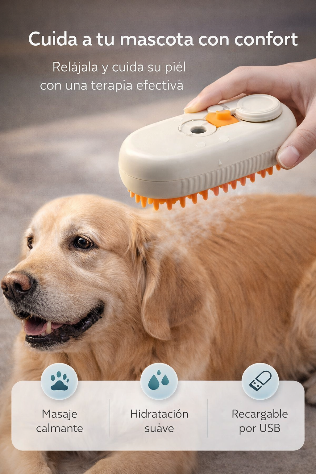 🐾 Cepillo a Vapor 3 en 1 para Mascotas – Cepilla, desenreda y cuida con más facilidad